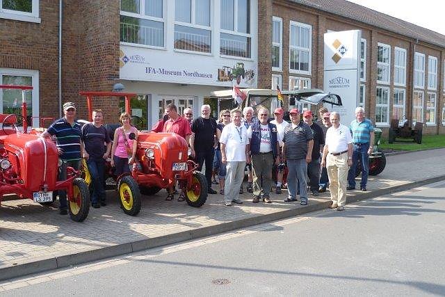 Es war ein ausdrücklicher Wunsch der Oldtimerfreunde aus Werther in Westfalen, einmal das IFA-Museum zu besuchen. An die 30 Freunde, tief verwurzelt in der Schlepperszene, fuhren am 05.09.2014 mit ihren originalgetreuen restaurierten Modellen der Marken Lanz, Hanomag, Porsche u.v.a. im Corso durch die Stadt zum IFA-Museum. Begleitet wurden sie von Teilnehmern des Dreschfestes, das am vergangenen Wochenende in Sundhausen stattfand, ihren vor 50 Jahren im ehemaligen Schlepperwerk Nordhausen gebauten RS04-30, Pionier, Typ Harz, und Famulus.