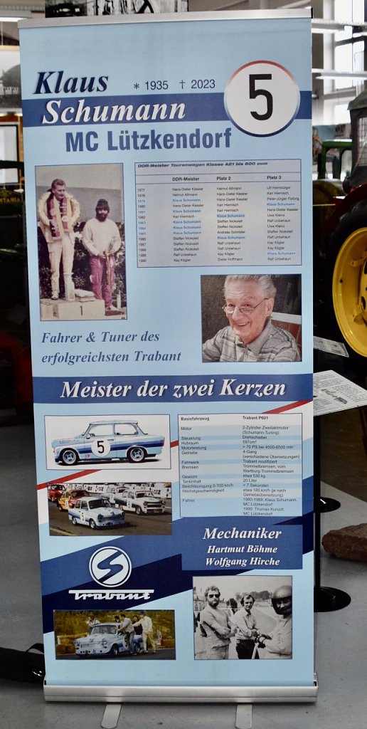 Besonders emotional jedoch der Beitrag von Peter Süssemilch. Peter war nicht nur mehrfacher DDR-Meister, sondern war auch im Besitz einer internationalen Fahrerlizenz, die ihn mit seinen Teams auf viele internationale Rennstrecken brachte. Der Auftritt 1989 mit seinem 80 PS Renntrabant bei Günter Jauch ist noch vielen in Erinnerung.