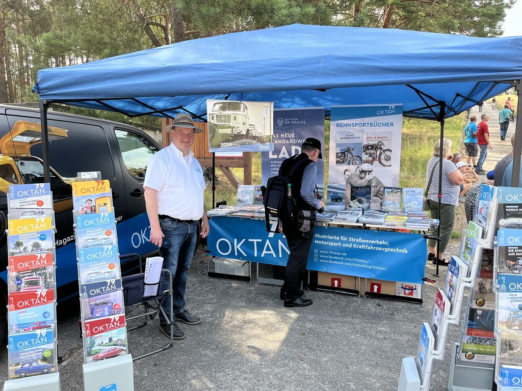 Es war deshalb Pflicht, zum Jubiläum auf der Festwiese und auf dem Testgelände in Horstwalde anwesend zu sein. Eine kleine Delegation hat sich, dank mobiler Hilfe durch das Autohaus Peter auf den Weg gemacht, ein Weg, der vor 1990 zum Tagesgeschäft der Nordhäuser gehörte. Das Autowerk war schließlich der größte Kunde und nach der Wende leider auch ein Teil des gemeinsamen Niedergangs.