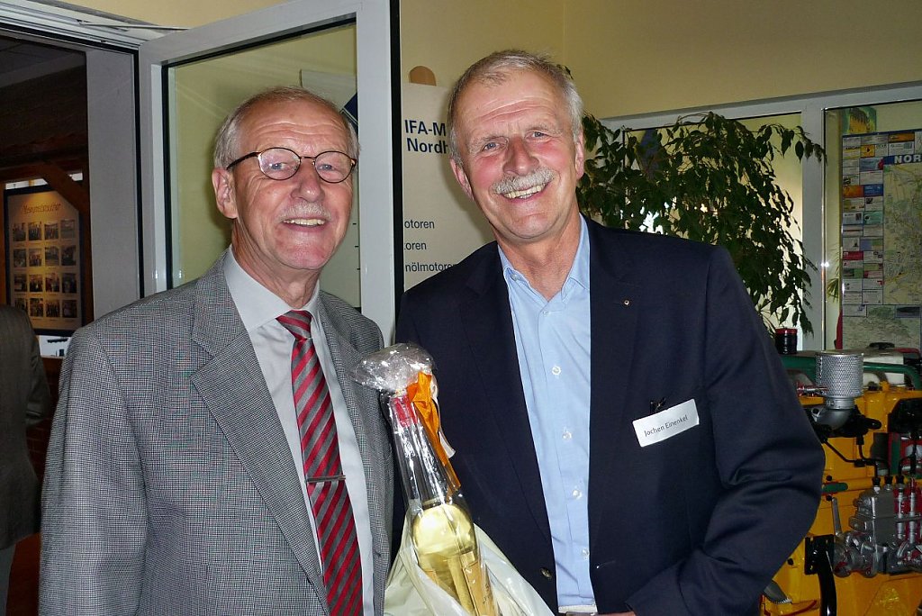 Prof. Viehmann hatte den Motor aus altem Landtechnik-Bestand bei der Einrichtung des August-Kramer-Instituts aufgestöbert. Nun befanden ihn beide Wissenschaftler als würdiges Geschenk zum 50. Jubiläum der IFA-Motorenproduktion. Demnächst wird das Technik-Exponat ins Museum überführt und dort den IFA-ranern zur fachmännischen Aufarbeitung übergeben.