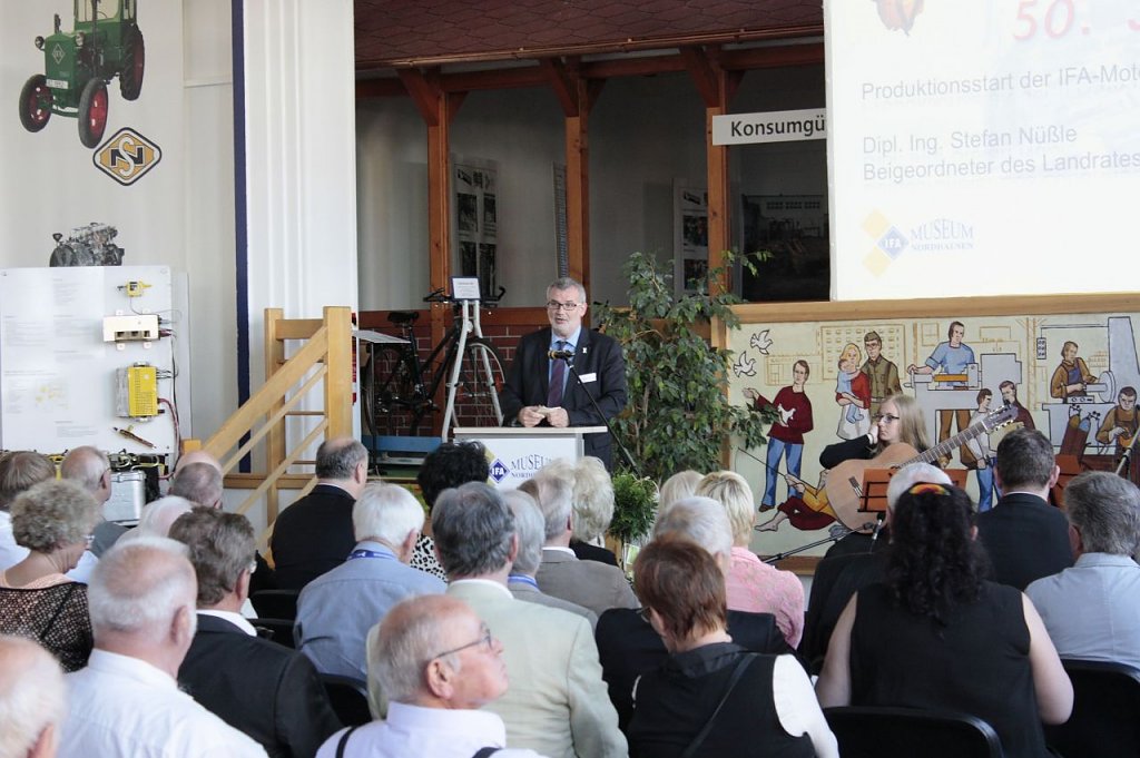 Nachdem Vereinsvorsitzender Helmut Peter die letzten 25 Jahre Revue passieren ließ und vor allem die Entstehung des IFA-Museums geschildert hatte, ergriff Infrastrukturministerin Birgit Keller das Wort und betonte: Ich würde Ihnen heute lieber zum 50. Geburtstag der Motorenproduktion gratulieren, doch die Geschichte hatte anderes vor! Sie spannte den Bogen von der Vergangenheit in die Gegenwart und sah in 1160 Mitarbeitern in heute rund 50 im IFA-Industriepark ansässigen Unternehmen einen positiven Fortgang der Geschäftigkeit am Traditionsstandort.