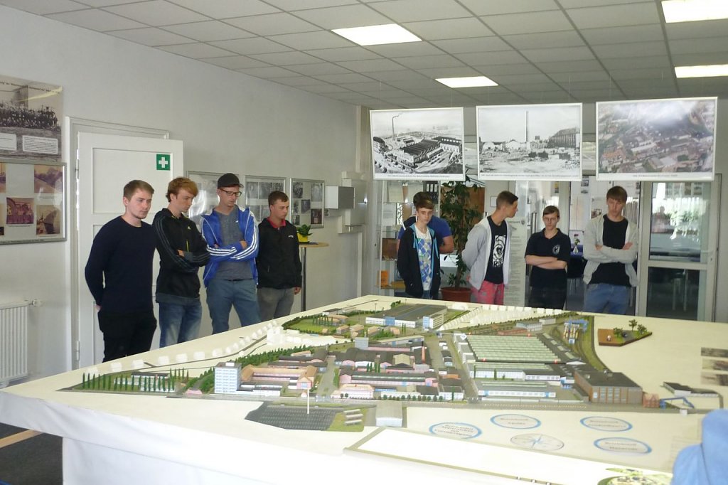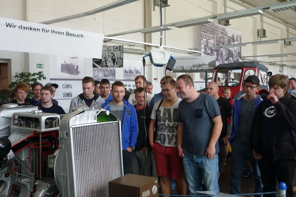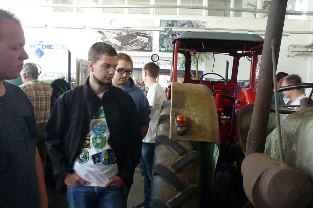 die ganze Gruppe vor dem Museum (Foto: hgf) die ganze Gruppe vor dem Museum (Foto: hgf) 09.07.2015, 43 Auszubildende des Berufsschulzentrums Sondershausen besuchen zum Abschluss ihres zweiten Lehrjahres das IFA-Museum. Nachdem alle Handys abgestellt und das Reisgepäck abgelegt führten die VF Geiger und Franke eine Gruppe aufmerksamer und interessierter junger Männer durch die Ausstellung in der Montaniastraße. Die Themen Bergbau und Maschinenbau passten gut zu ihren zukünftigen Berufen Bergbautechnologie, Werkzeugmacher, Metall- und Anlagenbauer. Die wenigsten hatten den Umfang und die Vielfalt der Industriegeschichte und technischen Leistungen erwartet. Am Ende erhielten alle ihr Schuljahreszeugnisse durch die begleitenden Ausbilder ausgehändigt. Herr Müller vom BSZ versprach, dass Museum zur Wissensvermittlung auch für die zukünftigen Generationen zu nutzen damit sich die Arbeit der vielen ehrenamtlichen Vereinsfreunde lohnt.