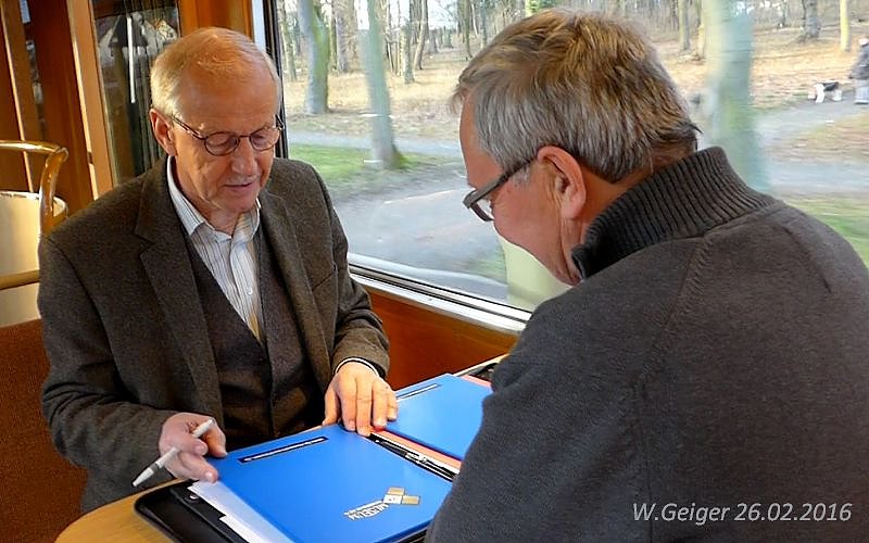 Am Freitag unterzeichneten Udo Kürbis für das IFA-Museum Nordhausen am Harz e. V. und Thorsten Schwarz für den Förderverein Straßenbahnfreunde Nordhausen e. V. im Rahmen einer gemeinsamen Vorstandssitzung eine Kooperationsvereinbarung. Die würdige Umgebung bildete eine Fahrt mit dem Schienenbistro, Triebwagen 59, durch das Netz der Nordhäuser Straßenbahn.