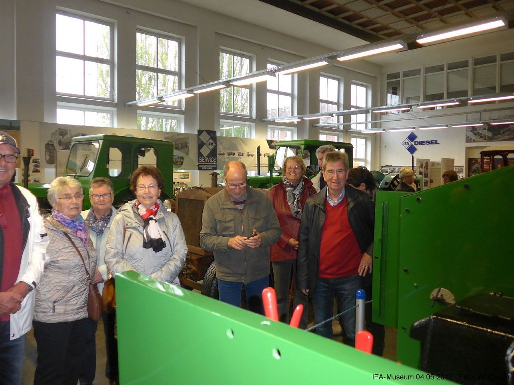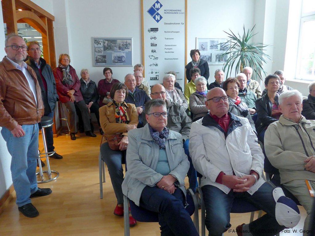 Herr Detlef Katzmann hatte gerechnet, mit 15 Personen zu kommen, 28 kamen tatsächlich und hatten einen immensen Wissensbedarf. Die obligatorischen 2 Führungsstunden erweiterten sich auf 3 Stunden, der Informations- und Gesprächsbedarf ging einfach nicht aus. Die Teilnehmer selbst kannten geschichtliche Ereignisse von denen auch wir als Museum noch profitieren werden. Herr Axel Fernschild, übrigens ein ehemaliger IFA-raner, hat ein Video und Informationen beige-steuert, insbesondere aus der Zeit des Niederganges der IFA-Motorenwerke 1990/96, dem Ver-bleib der hochmodernen IFA- Fertigungsstraßen und dem kuriosen Verhalten so mancher Berater, die sich bei der Abwicklung der IFA eine goldene Nase machen konnten. Er wird dieses für uns auf-schreiben und erklärte auch die Absicht weiterer Unterstützung, auch als künftiges Vereinsmitglied des IFA-Museum.