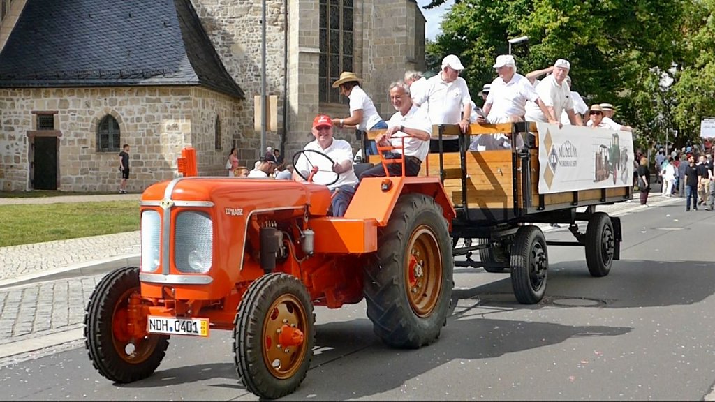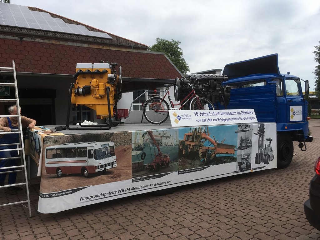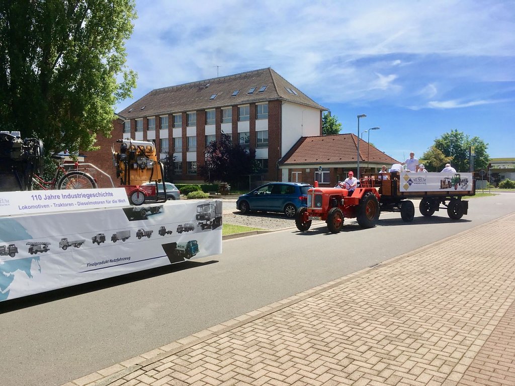 Veranstaltungen wie das diesjährige Rolandsfest sind immer eine besondere Kraftanstrengung für den Verein. Vorbereitung und Durchführung wollen überdacht und realisiert werden. Erfahrungen und Equipment waren vom letzten Umzug 2012 vorhanden. Eine kleine Arbeitsgruppe aus Vereinsmitgliedern und Mitarbeitern der AGH machten sich ans Werk. Der L 60, von der Reise nach Ludwigsfelde noch etwas angeschlagen, wurde instandgesetzt und der Aufbau hergerichtet. VF Baumgarten lieferte ein paar neue Banner und VF Levin stellte uns den Transportanhänger zu Verfügung. Für den neu aufgebauten Schlepper Typ Harz die erste Bewährungsprobe. Dank guter Vorbereitung waren die beiden Festwagen schnell umgebaut und für ihre Aufgabe fit.