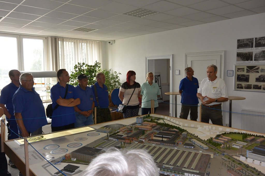 Mit 15 gestandenen Schlepperenthusiasten und den eigens angereisten Familienangehörigen wurde eine ausgiebige Museumsführung, aufmerksam verfolgt. Ein angeregter Gedankenaustausch zur Geschichte des Schlepperbaus in Nordhausen machte die Führung besonders interessant.