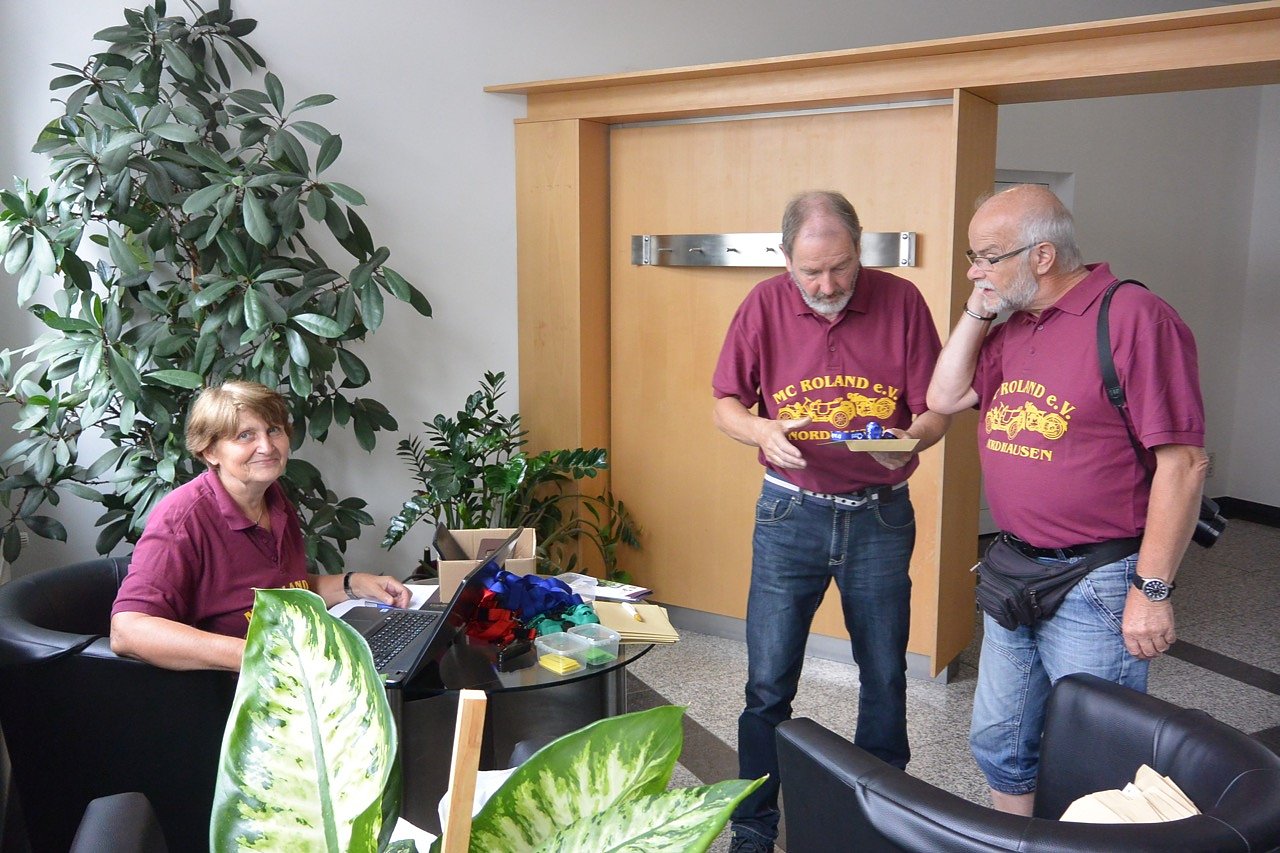 Zum Glück gab es keine Ausfälle auf der Tour und alle kamen zur Siegerehrung zurück ins Museum. Ein kleiner Reifenschaden kurz vor Zieleinlauf traf ausgerechnet unser Vereinsmitglied Günther Helbing, aber wie hier so üblich hatte Klaus Dieter Voss von von den "Rolandern" ein Reserverad in der Ecke und dem Mann konnte schnell geholfen werden. Alles in Allem ein guter Tag für das Museum und den MC Roland.