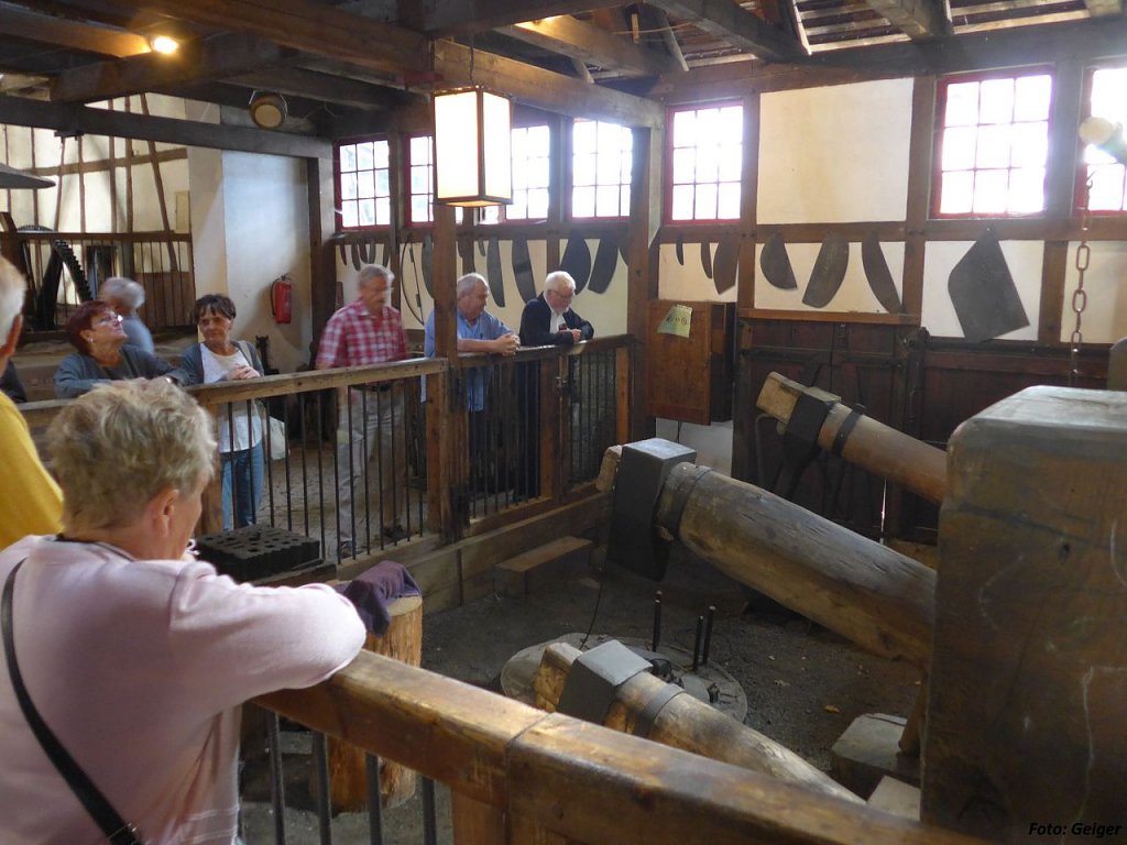 Der Tobiashammer, für Techniker zweifellos der Leckerbissen. Sogar unsere Damenbegleitung konnte sich nicht dem Zauber entziehen, der von den riesigen Fallhämmern und deren Klanggewalt, begleitet von der rauschenden Musik, vom Fluss der Ohra und den antreibenden Wasserrädern, ausging.