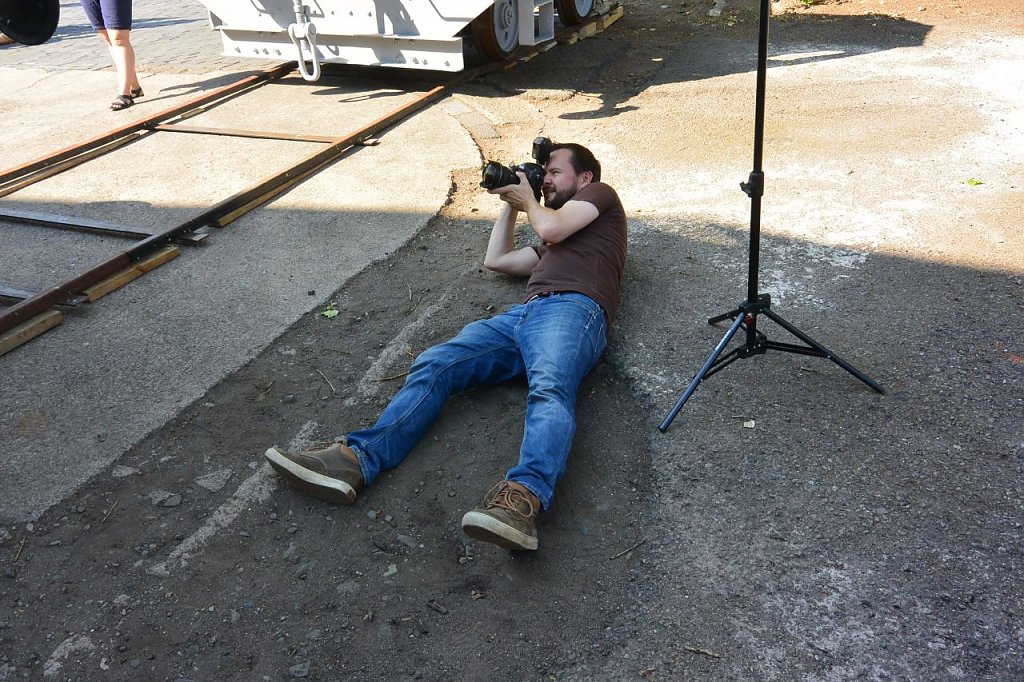 Die Kollegen in Nordhausen haben am nächsten Tagen alles vorbereitet, Schienen verlegt und die Loks aus der Halle geschoben. Gegen 8:00 Uhr begann das Programm, Volker Lange war persönlich gekommen, um die Entladung zu überwachen. Zunächst Interviews mit dem MDR Rundfunk und pünktlich 10 Uhr kam der Kran der Firma Wiemann und erledigte professionell seine Aufgabe. Verfolgt von Presse und vielen Schaulustigen, setzte die LD 2 auf ihr neues wenn auch noch provisorischen Schienenbett auf. die neue Familie (Foto: Franke)