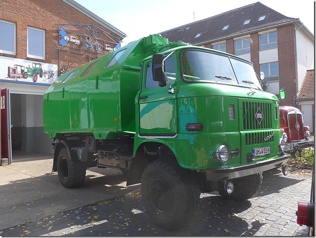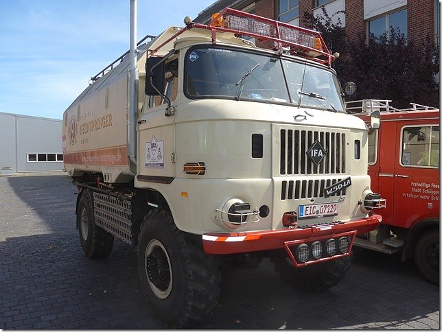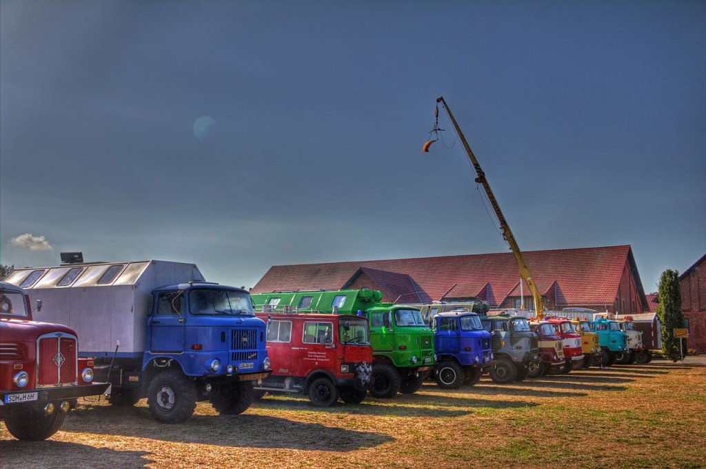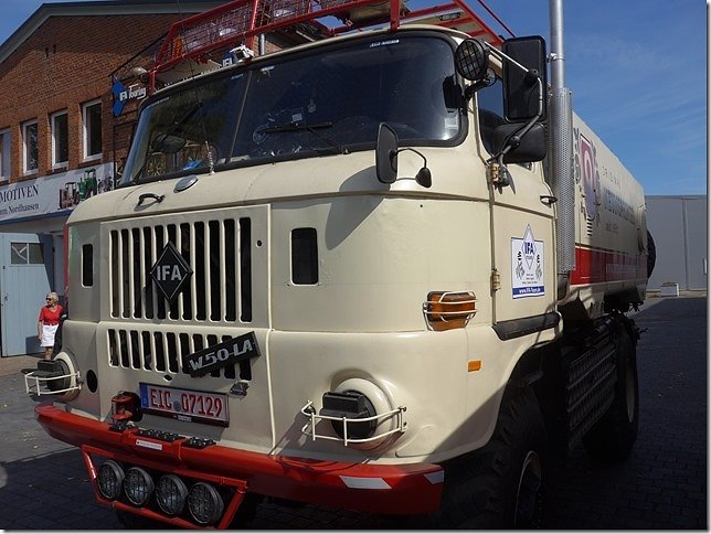 aus Aachen, aber auch aus Bayern Nähe Ingolstadt und dem Ruhrgebiet reisten die Enthusiasten mit ihren LKW an. Leider gab es bei einem Teilnehmer aus Bielefeld bei der Anreise, eine kleinen Reifenpanne, dank Hilfe des IFA-TOURS Teams, konnte aber schnell geholfen werden.