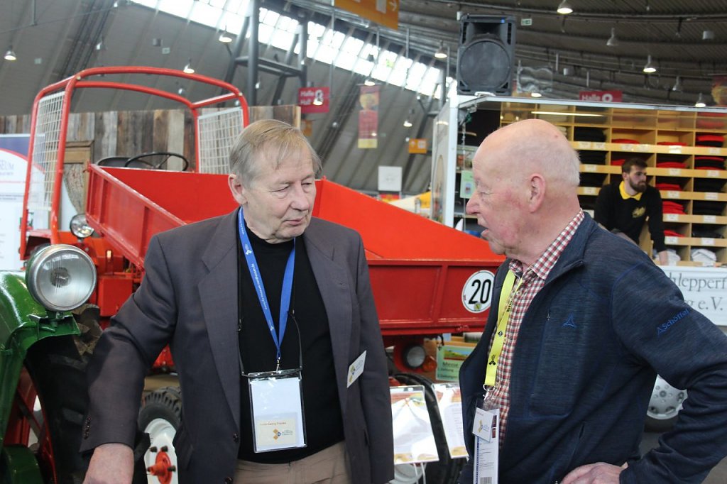 Mit Peter Scheuch, Sohn von Egon Scheuch, dem Erfinder des ersten Geräteträgers, hatte sich der kompetenteste Zeitzeuge bereit erklärt, zwei Tage auf der Messe den Besuchern Rede und Antwort zu stehen. Zwei Tage sind zwar anstrengend, aber auch interessant. Die Frage: Wer hat es erfunden?" wurde sehr oft gestellt und genauso oft folgte die Antwort: Egon Scheuch aus Thüringen hat es erfunden!, für viele Besucher eine neue überraschende Erkenntnis. Schon allein wegen dieser Wissensvermittlung hat sich der Besuch gelohnt. Wie schon auf früheren Präsentationen gab es natürlich viele Gespräche am Rande und der Eine oder Andere hat versprochen, den Südharz zu besuchen. Ein paar neue Freundschaften wurden geschlossen, die unserem Bekanntheitsgrad auch im Süden der Republik nicht abträglich sein werden. Leider bleibt dabei in der Regel wenig Zeit, alle übrigen Aussteller zu besuchen und so bringen wir nur ein paar wenige Bilder mit.