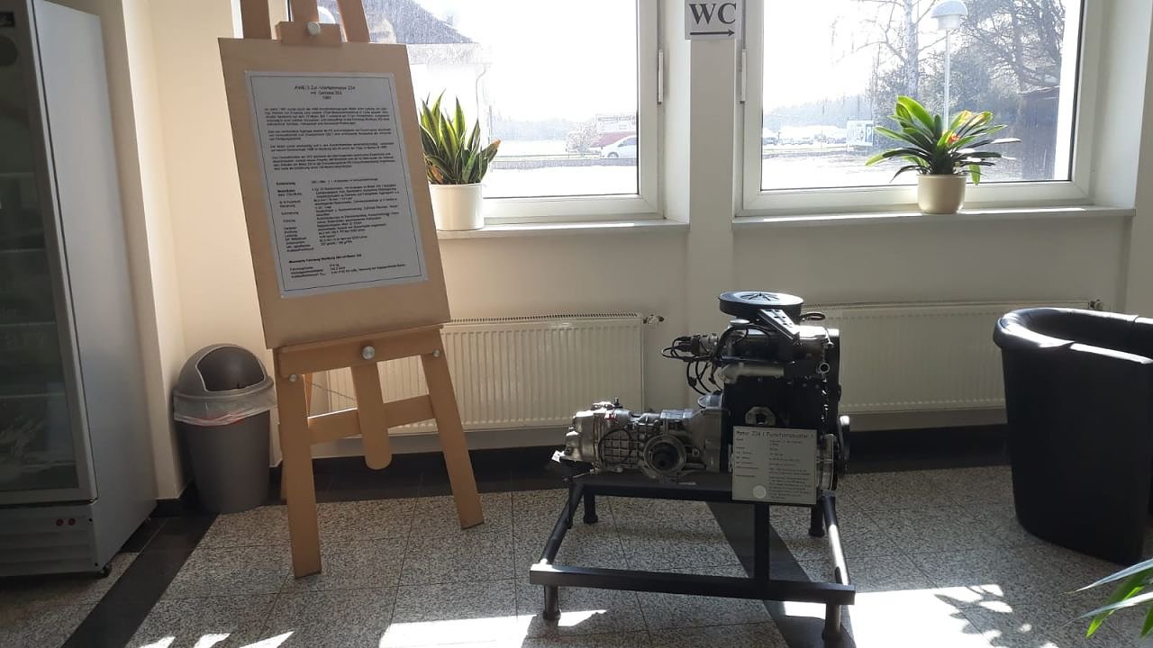Es war Prof. Peter Kirchberg, der bei seinem Besuch im April 2018 den Vorschlag machte: Holt Euch doch mal den Konrad von Freyberg aus Eisenach, der kann Interessantes zum Eisenacher Motorenbau berichten. Also haben wir uns in Eisenach gemeldet mit der Bitte, einen Vortrag zum Motorenbau in Eisenach in Nordhausen zu halten. Als wir uns per Mail zum Termin geeinigt hatten, bin ich selbst nach Eisenach gefahren, um Konrad von Freyberg kennen zu lernen. Nachdem der erste Versuch schief gelaufen war, traf ich ihn im Automobilmuseum Eisenach. Dort ist er heute aktiv im Förderverein tätig. Seine Bedenken, ob sich genügend Interessierte finden würden, waren schnell zu zerstreuen. Unser Wunsch zu erfüllen, ein besonders Exponat und Präsentationsmaterial zu erhalten, war schon komplizierter. Dem wurde aber dank seiner Führsprache durch die Stiftung - Automobile Welt Eisenach - statt gegeben und wir konnten am 15.03.19 einen der wenigen Dreizylinder 4-Takter nach Nordhausen holen.