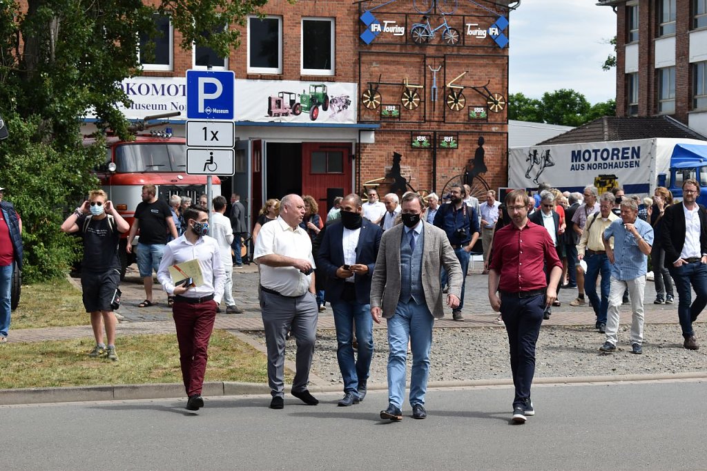 Als Gäste waren die Landtagspräsidentin Birgit Keller, der Ministerpräsident Bodo Ramelow und der Landrat Matthias Jendricke erschienen. Der Stadtrat hatte seien ersten Beigeordneten entsandt und viele Zeitzeugen hatten den Weg in die Montaniastraße gefunden. Sie alle freuten sich, trotz und mit Corona eben diese Ausstellung eröffnen zu können und verwiesen auf die bisherige Erfolgsgeschichte des IFA-Museums.