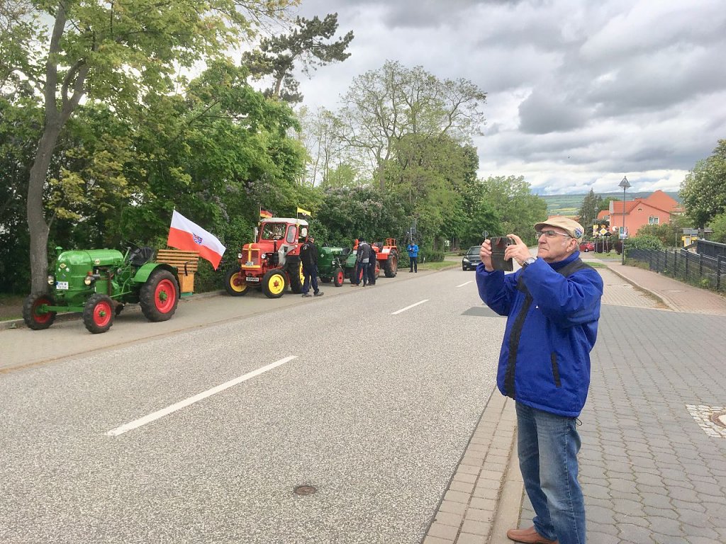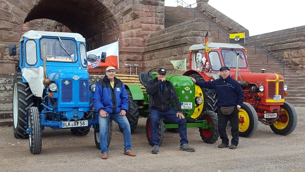Nach erfolgreicher Fahrt trafen sich alle wohlbehalten auf dem Plateau vor dem Denkmal zum Fotofinisch. Eine besondere Überraschung bereitete Schlepperfreund Hartmut Böttner aus Oldisleben. Er brachte seinen Nachbau eines Famulus RT 330 mit. So waren alle Nordhäuser vereint. Swen wollte natürlich wissen, warum die Freunde so stolz auf ihre Trecker sind und warum sie sich nicht einen anderen Kultschlepper anschaffen.