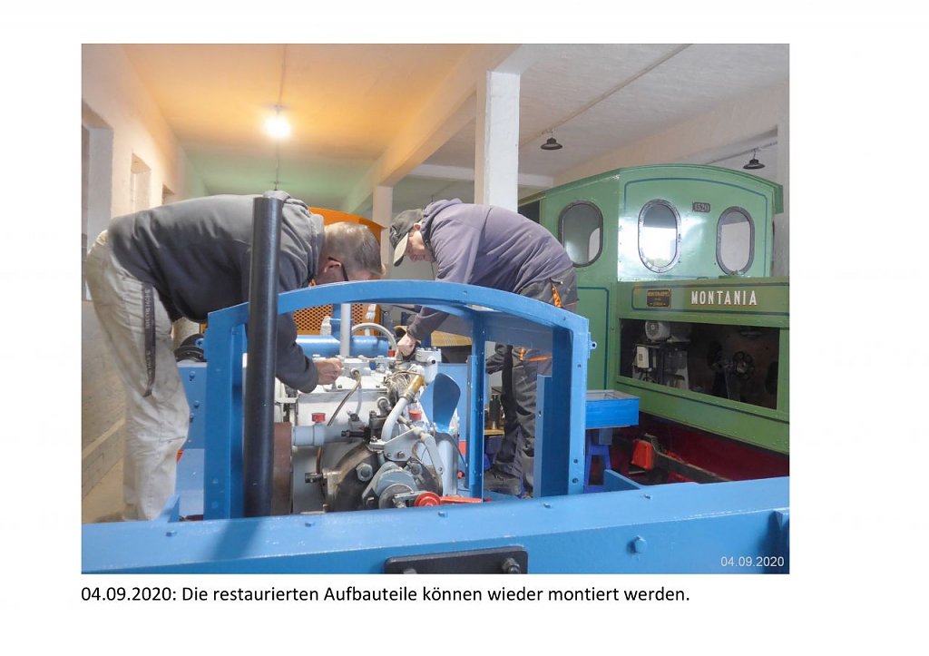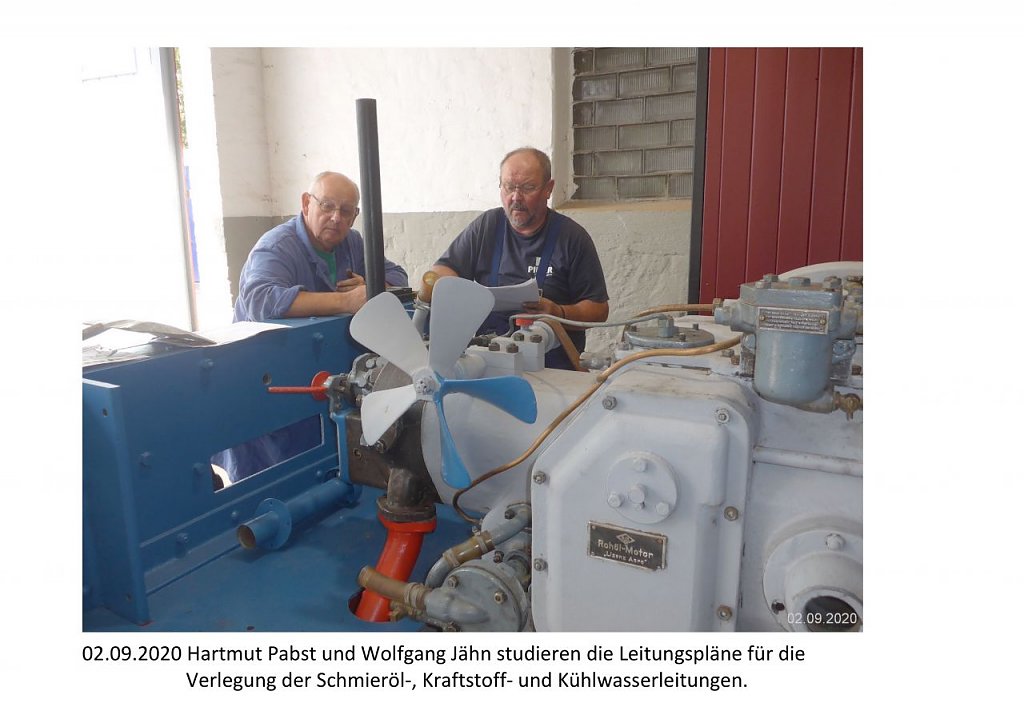 Nach etwa 2600 Stunden aufwendiger Arbeit ist es nun soweit, der Motor läuft und der Rost ist einem neuen Anstrich gewichen.