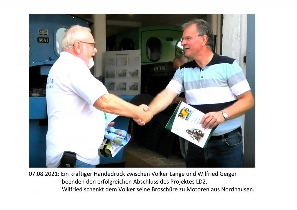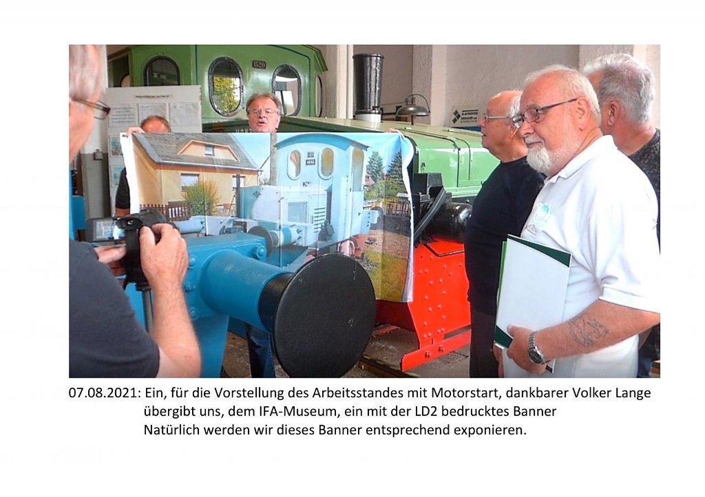 PS. Nicht nur die Lok spendete Volker Lange dem IFA-Verein, sondern anlässlich der Inbetriebnahme auch noch 200 Euro für die Vereinskasse und eine Fahne für "seine LD 2", die heute unsere LD2 ist. Danke Volker