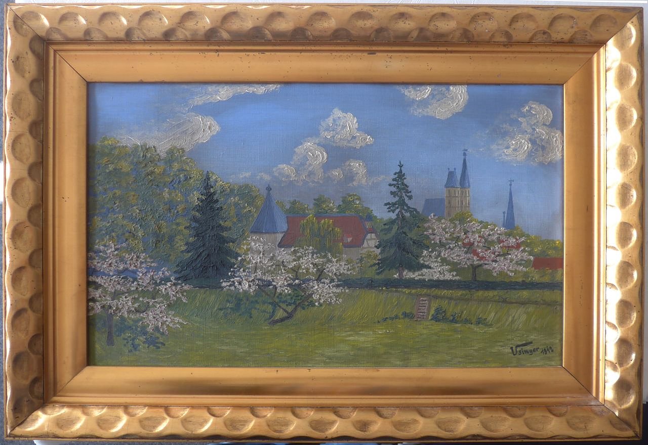 Von Wilfried Geiger erhielt ich - gewissermaßen als Dank für meine Zuarbeit zum Gerlach-Motor das von ihm verfasste und durch das IFA-Museum veröffentlichte Heft Geschichte des Motorenbaus in Nordhausen Als ich Interessiert das schöne Heft durch sah, stieß ich auf Seite 4 auf den Namen Usinger, als Konstrukteur von 6 U Typen bis 1914. Da erinnerte ich mich an das Signum auf einem Ölbild, welches bei uns im Korridor zwischen Bildern mit Nordhäuser Motiven hing: Usinger 1912. Das passte!