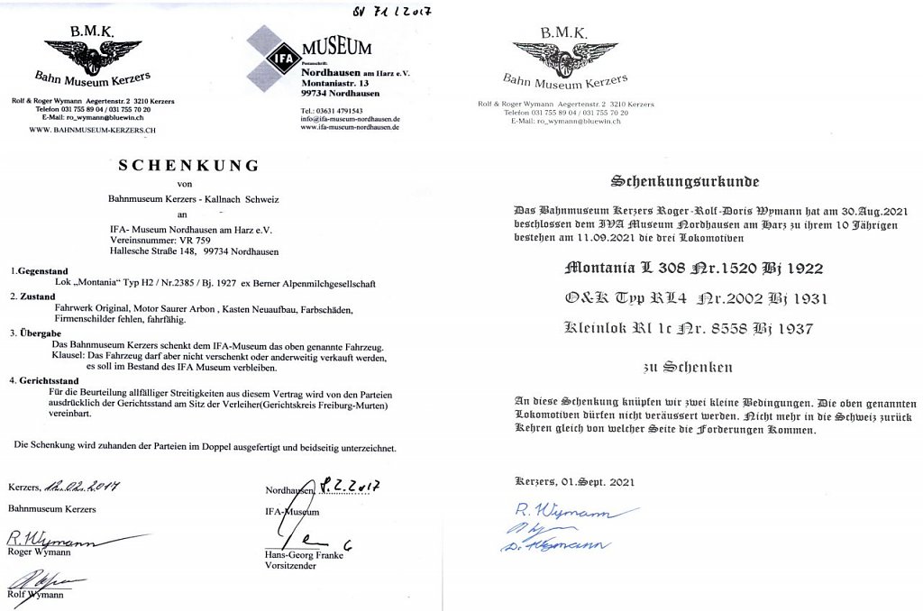 Im Febr. 2017 schenkten sie uns schon die Lok H2 als Basis zur Herstellung ihres originalen Kleides von 1927 und im Sept. 2021 die Lokomotiven L308, RL4 und RL1c.