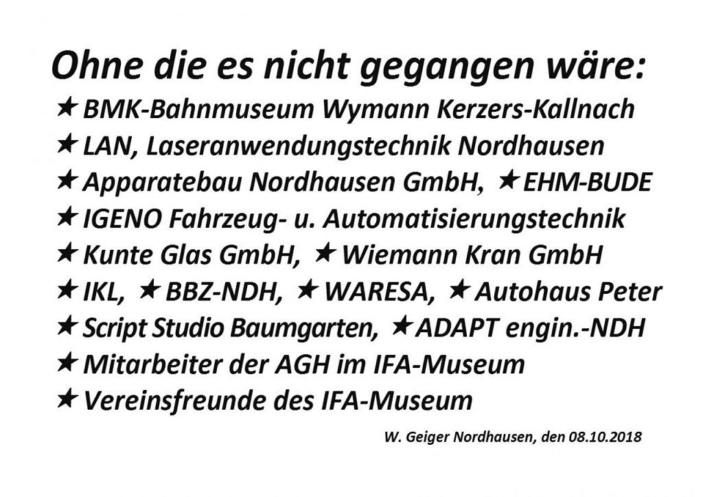 Wen wundert es, dass sie dieses Interesse am Erreichten veranlasste die Lokomotiven dem Verein IFA-Museum Nordhausen am Harz e.V. in treue Hände zu geben.