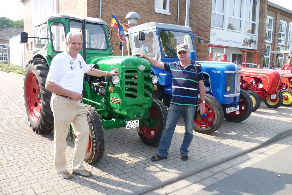 Es war ein ausdrücklicher Wunsch der Oldtimerfreunde aus Werther in Westfalen, einmal das IFA-Museum zu besuchen. An die 30 Freunde, tief verwurzelt in der Schlepperszene, fuhren am 05.09.2014 mit ihren originalgetreuen restaurierten Modellen der Marken Lanz, Hanomag, Porsche u.v.a. im Corso durch die Stadt zum IFA-Museum. Begleitet wurden sie von Teilnehmern des Dreschfestes, das am vergangenen Wochenende in Sundhausen stattfand, ihren vor 50 Jahren im ehemaligen Schlepperwerk Nordhausen gebauten RS04-30, Pionier, Typ Harz, und Famulus.