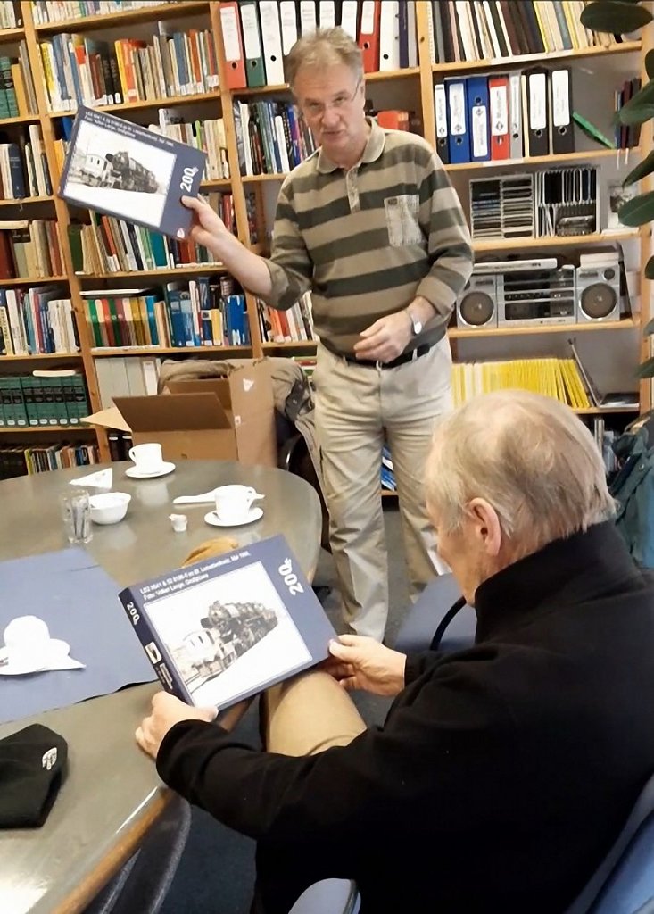 Seit 2010 verfolgte und lobte er die Aktivitäten zur Rekonstruktion und Ausstellung der Exponate in unserem IFA-Museum. 2018 war es soweit, er schenkte unserem IFA-Museum die Lok. Diese wurde hier aufwendig restauriert, einschließlich dem 1979 durch Frostschaden zerstörten Motor, zur größten Freude von Volker. Für die Übergabe an einem Samstag, zunächst 20 Minuten angesetzt, wurden es etwa Zweieinhalb Stunden.
