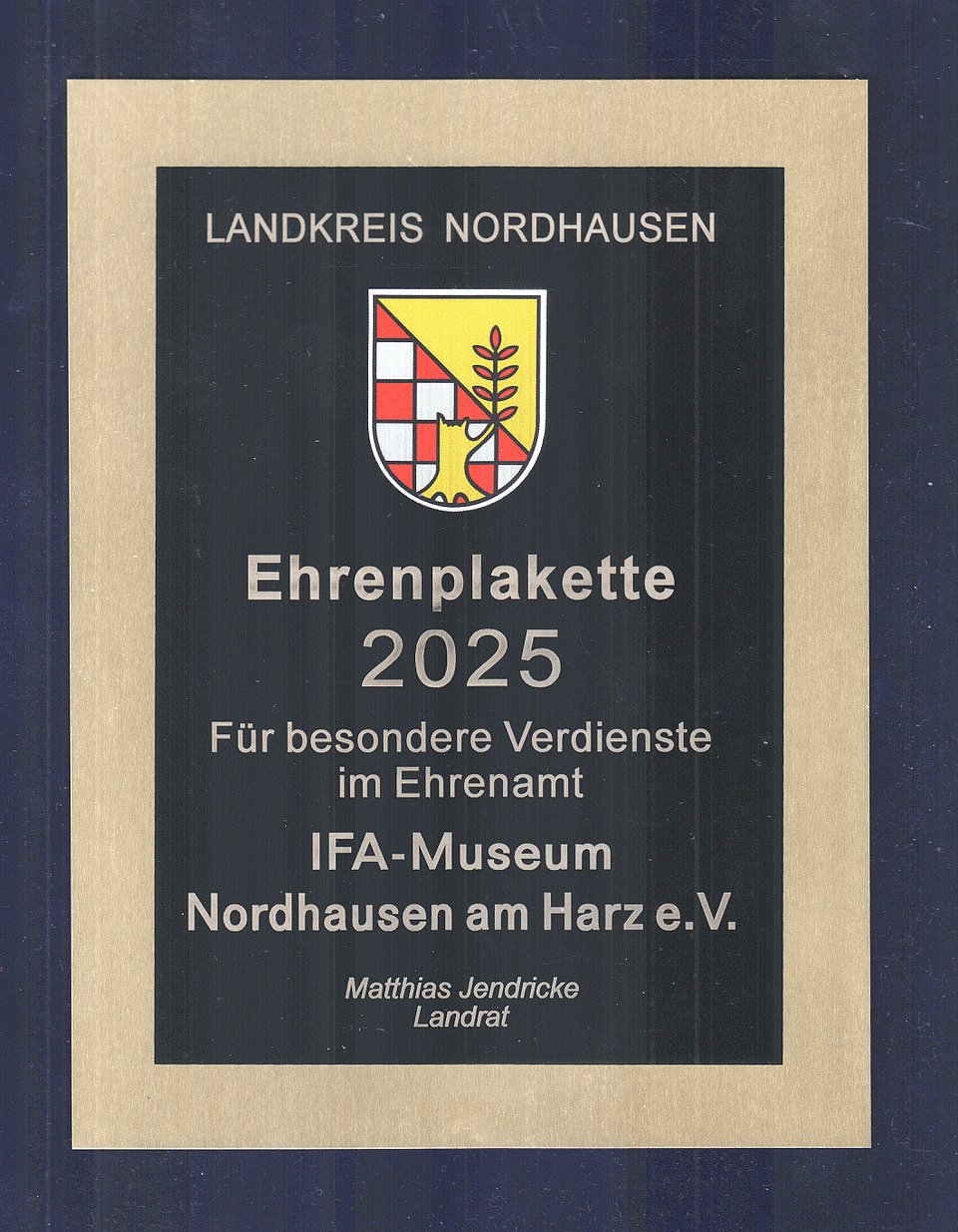 Deshalb freut es die Vereinsmitglieder ganz besonders, dass 2025 die Ehrenamtsplakette des Landkreises Nordhausen an unseren Verein IFA-Museum Nordhausen geht, sie würdigt die langjährige erfolgreiche Arbeit der Vereinsfreunde.