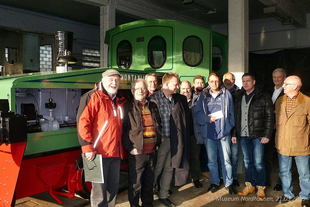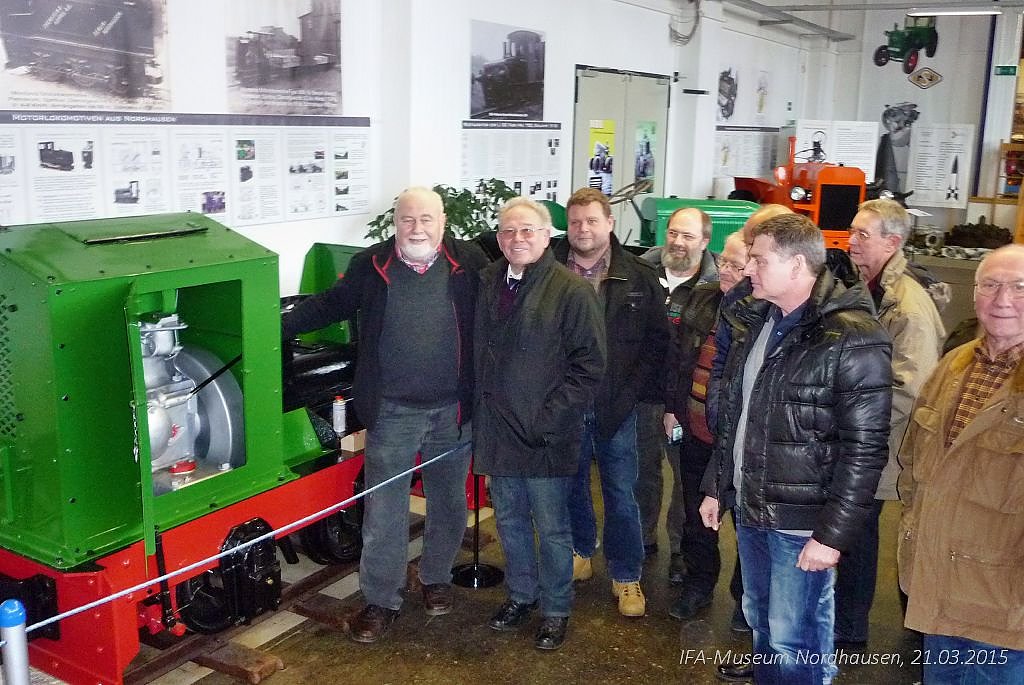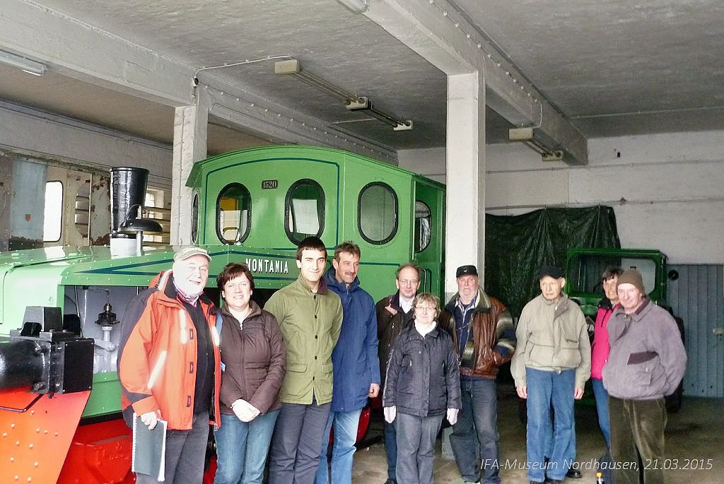 Für den Aufenthalt in Nordhausen waren diverse Freizeitangebote vorbereitet, so auch ein Besuch im IFA-Museum. Mehr als 60 Interessierte kamen und zeigten sich überrascht und beeindruckt von der inhaltlichen Vielfalt und Gestaltung der Ausstellung. Ralph Gruner, Chef und Organisator der Vereinsfreunde aus Sachsen zollte Lob und Anerkennung für die Gesamtheit der Museumspalette. Dass alte Technik, auch nach Jahrzehnten des Stillstandes ihre funktionelle Zuverlässigkeit beweisen kann, zeigt sich an der mehrfachen Inbetriebnahme der Feldbahnlok RL 1C, Baujahr 1937, per Hand, durch den Vereinsfreund Wilfrid Geiger.