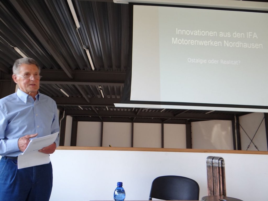 Mit seinem Vortrag zur Motorenentwicklung in Nordhausen begeisterte Dr.-Ing. Werner Steinmetz 44 sehr aufmerksame und fachlich interessierte Zuhörer nicht nur aus dem ehemaligem Automobilwerk. Er konnte an Hand vieler Entwicklungen aus der Dieselmotoren-Entwicklung der DDR nachweisen, dass neben Serienlösungen auch zukunftsweisende Lösungen bereits in den 1970/1980er Jahren entwickelt und erprobt wurden und die erst Ende der 1990er Jahre im Dieselmotorenbau realisiert wurden(Common-Rail-Diesel-Einspritzung, Eisenkolben).