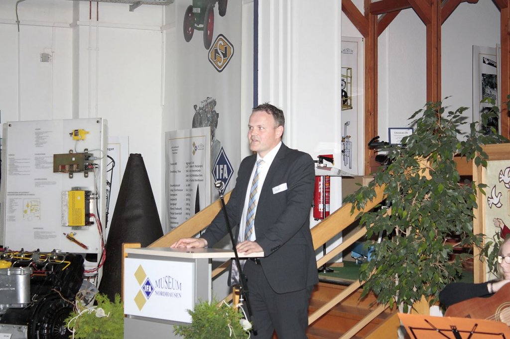 Als letzter Betriebsdirektor hatte Otto Brandt die IFA Motorenwerke Nordhausen von 1977 bis 1988 gelenkt und geleitet. Ihm oblag am Freitag das letzte Wort – als einem der wichtigsten IFA-Zeitzeugen. Nachdem er einen persönlichen Brief seines Vorgängers Robert Sternberger (1965 – 1977) verlesen hatte, erinnerte er an das tolle Team, das er einst um sich scharte: Es hatte Weltniveau. Und wenn ich daran denke, fallen mir Namen wie Sternberger, Schirrmacher, Beykirch, Steinmetz, Matthees, Jahn und viele weitere ein. Viele von ihnen bauten das Museum auf und sind heute hier. Sie beweisen, dass dieses Museum nicht nur ein Hobby älterer Herren und Damen ist, sondern sie stehen dafür, dass man die Eigenschaften der Nordhäuser Erzeugnisse aus den vergangenen 110 Jahren in die Welt tragen muss. Eine bessere Werbung kann man für das neue Industriegebiet nicht machen.